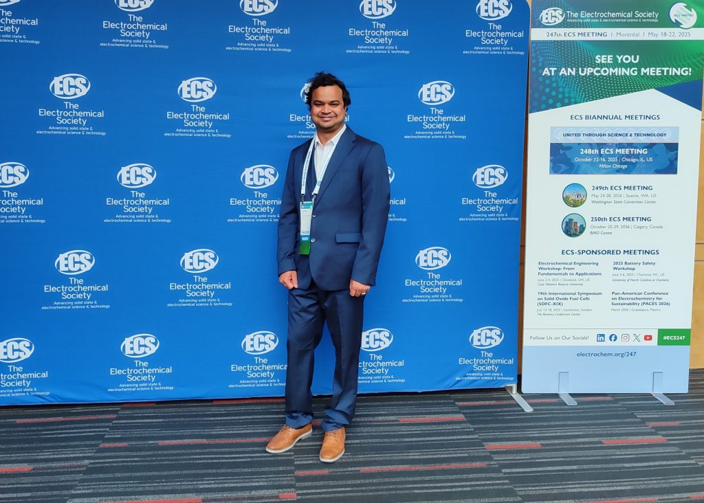 This abstract, entitled “Polymer Electrolyte Based Flexible Micro-Supercapacitors for Future Aerospace and Smart e-Textile Applications”, was presented by Dr. Apurba Ray, Research Scientist, who is the co-author of the publication with Professor Bilge Saruhan, Senior Researcher, both from our German partner DLR. The abstract was presented on the the 20th of May 2025 at 11:40h in the Palais des Congrès de Montréal, as part of the Symposium A01: “New Approaches and Advances in Electrochemical Energy Systems”.